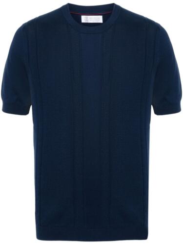 Knitted Cotton T-Shirt Navy Brunello Cucinelli £740.00 -
