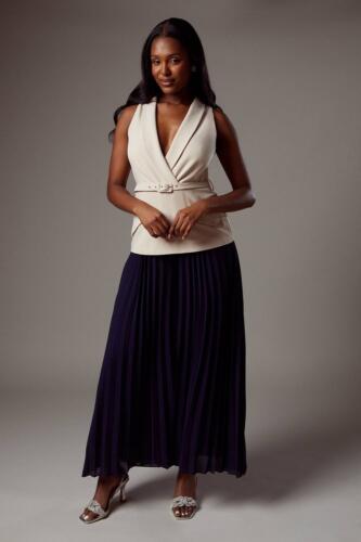 Sleeveless Pleated Dobby Mesh Corsage Maxi Dress Goddiva £95.00 -