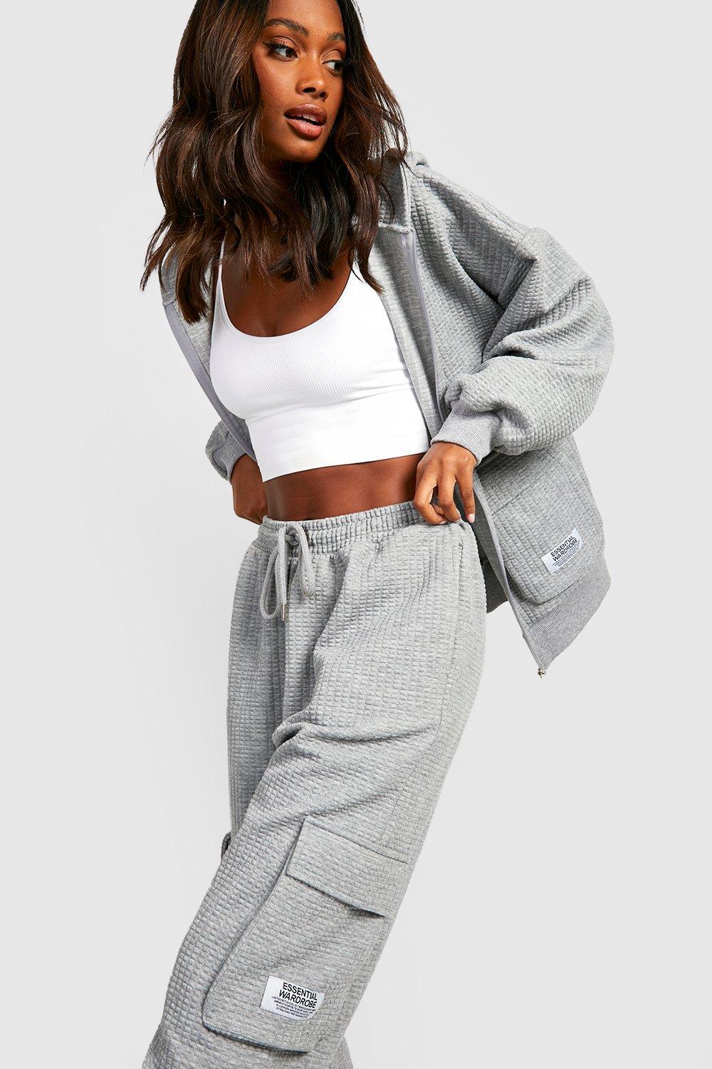 Boohoo Womens Cargo Pocket Zip Through Hooded Tracksuit