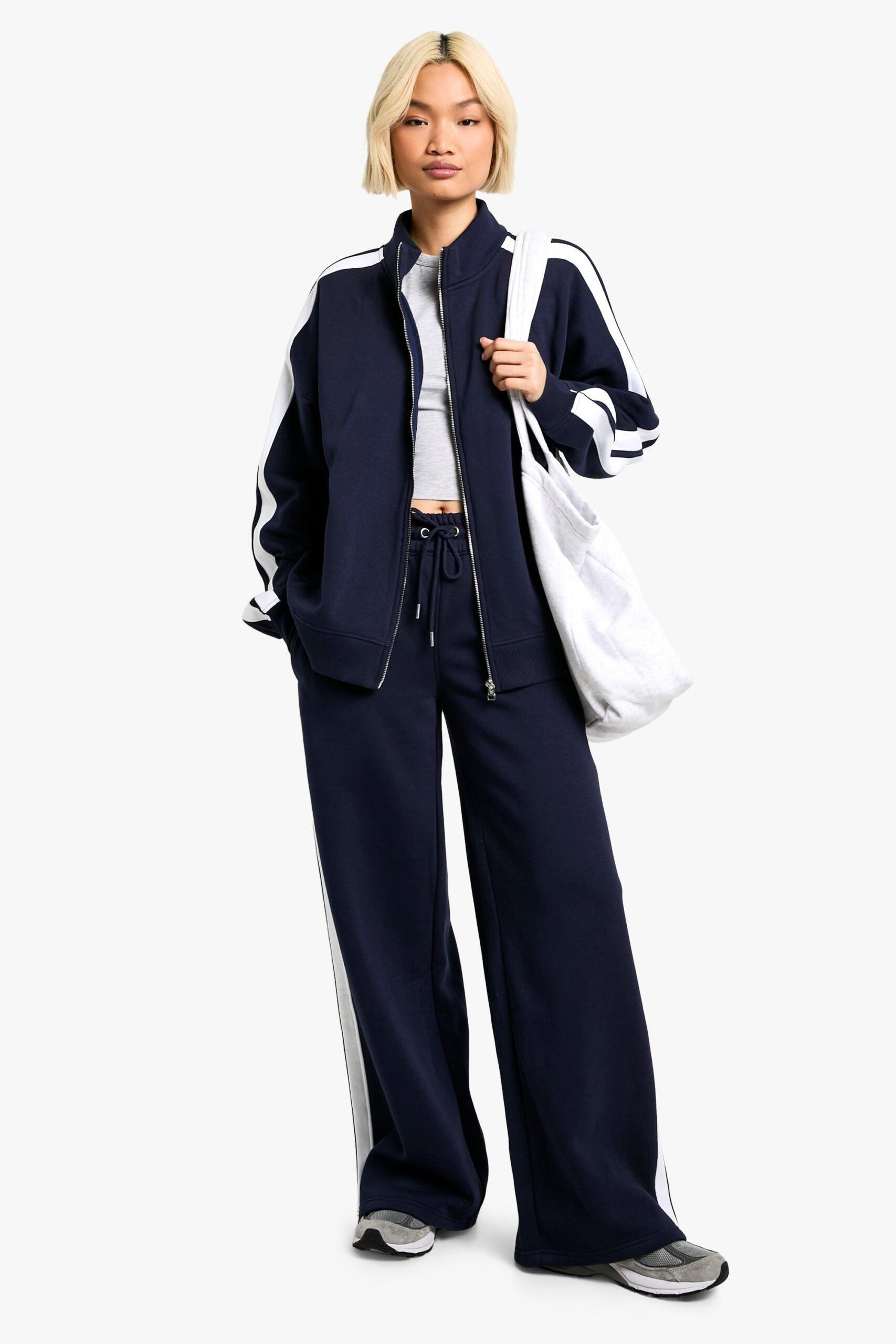 Womens Funnel Neck Side Stripe Zip Through Tracksuit – Navy – S – Funnel Neck Side Stripe Zip Through Tracksuit