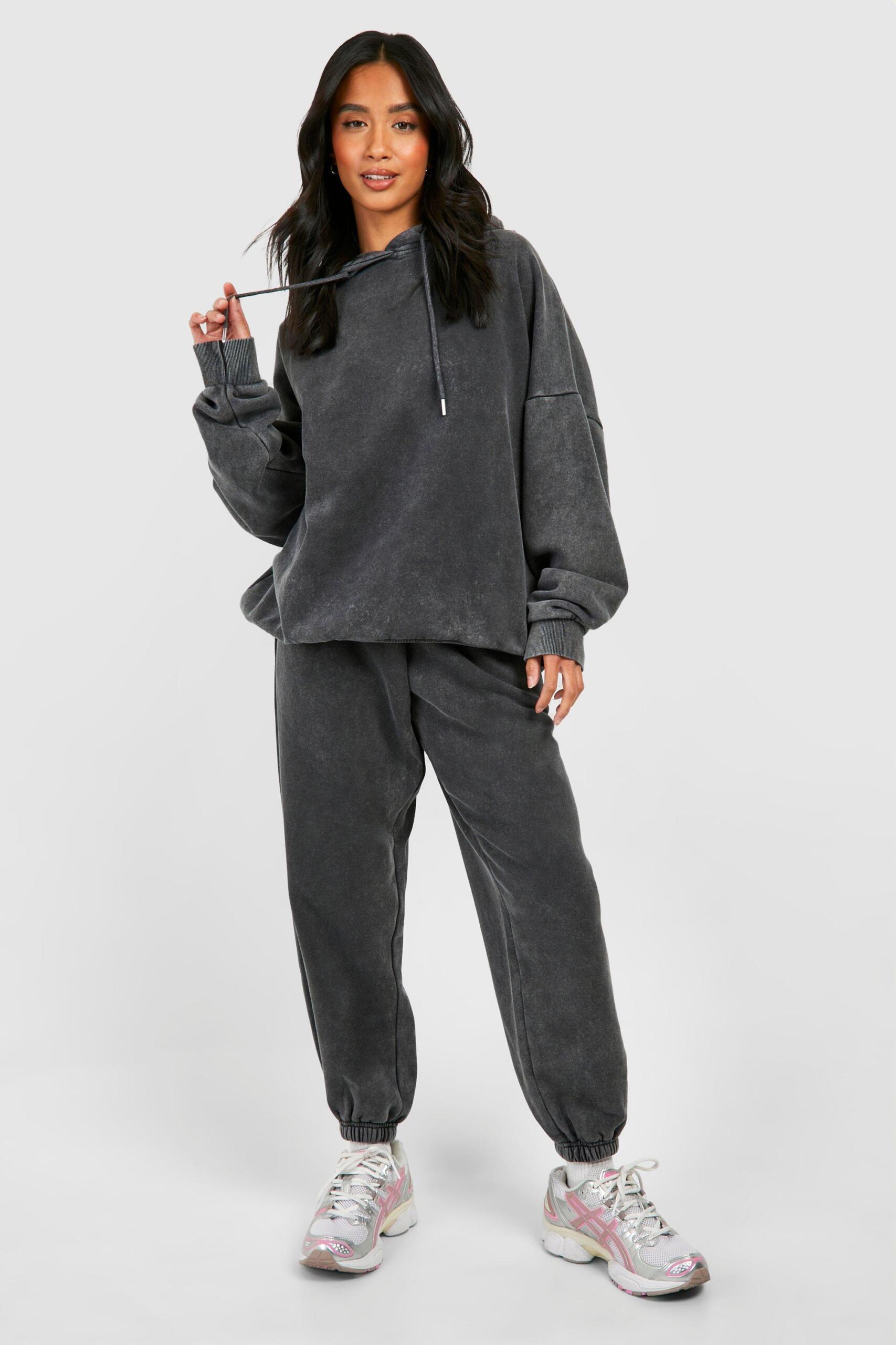 Boohoo Womens Petite Acid Wash Back Print Slogan Trakcsuit