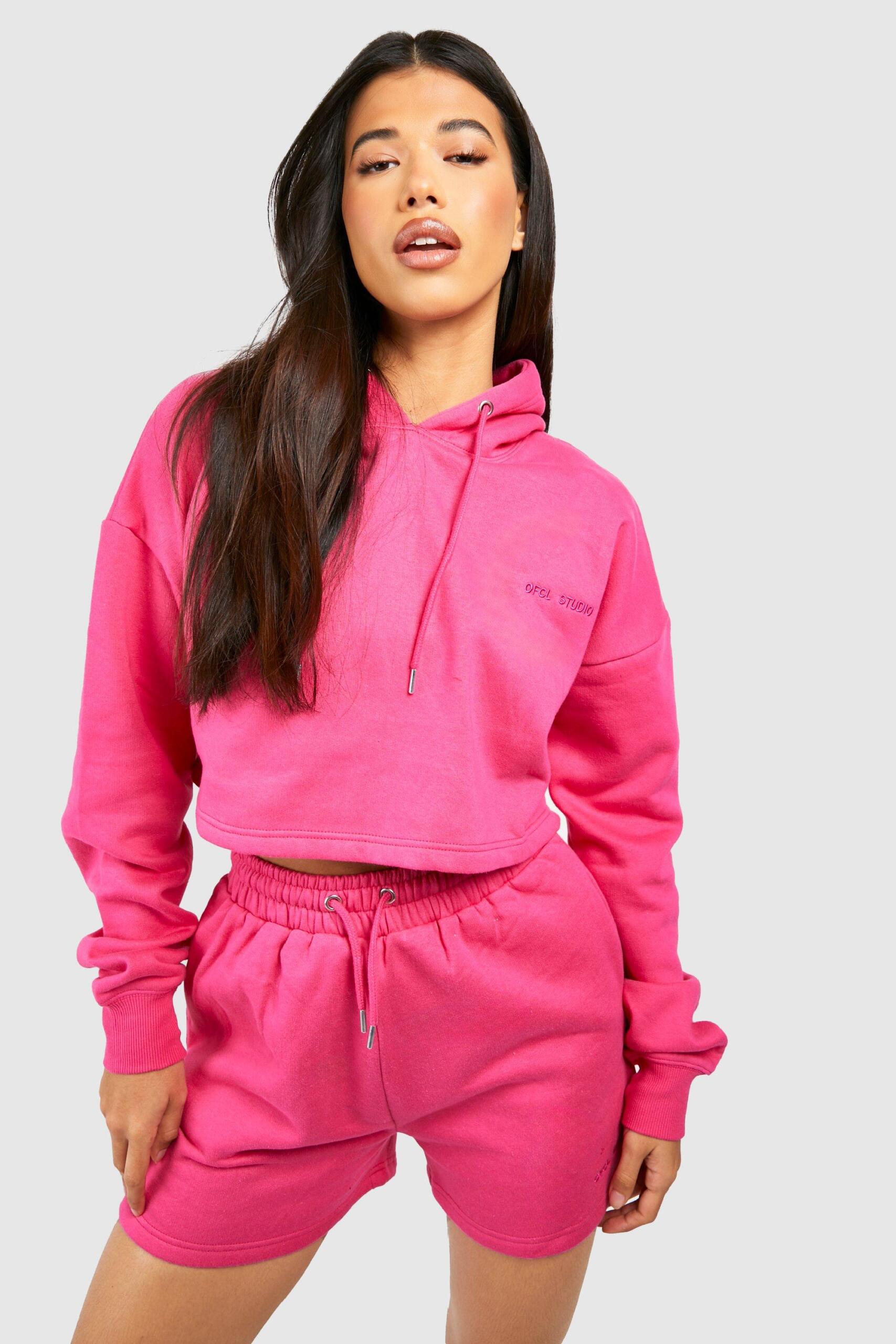 Introducing the Womens Tall Dsgn Studio Embroidered Hooded Short Tracksuit by Boohoo, a trendy and stylish sportswear ensemble that provides both comfort and fashion. This tracksuit is perfect for those who desire a unique and eye-catching look even during their workouts.