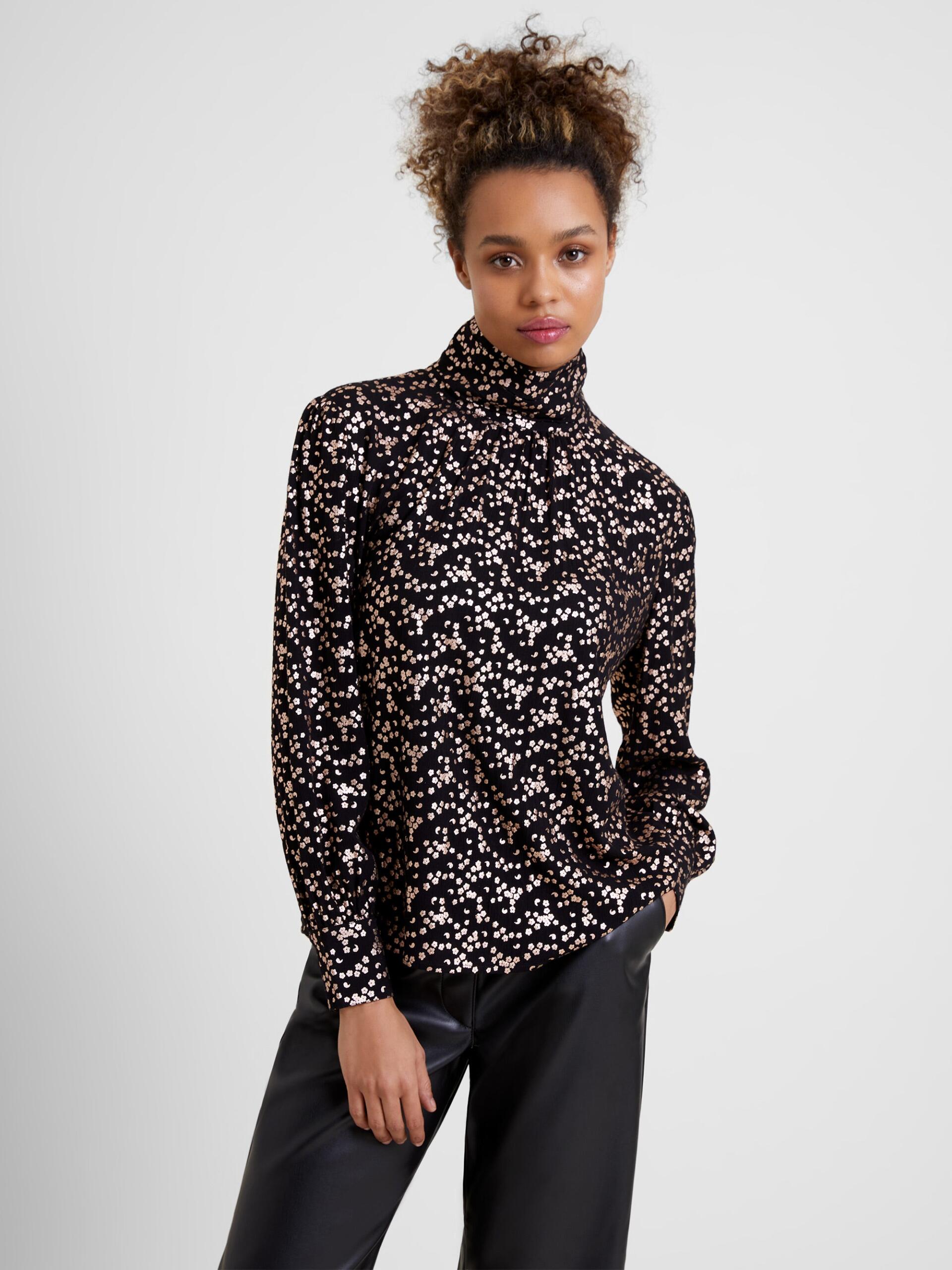 Great Plains Stardust Foil High Neck Blouse Black/Gold Metallic