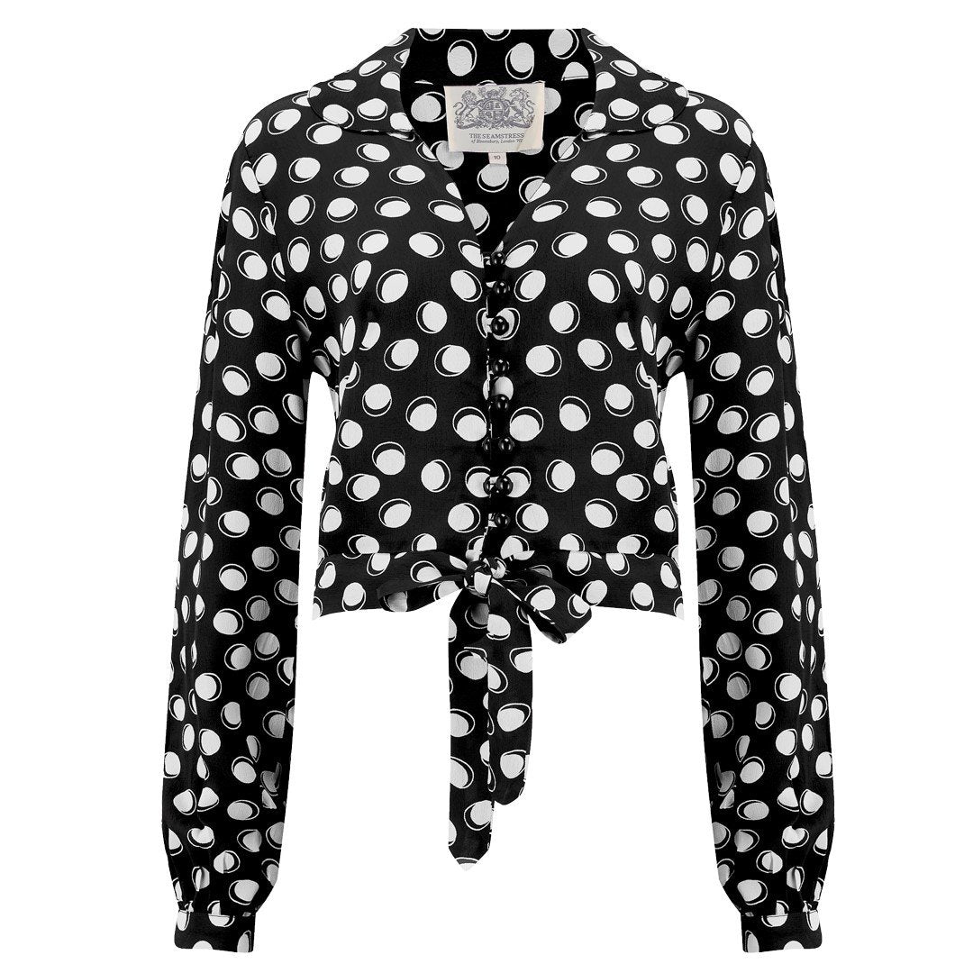 Introducing the “Clarice” Blouse from The Seamstress Of Bloomsbury, a piece that embodies subtle sophistication and vintage elegance. This slim-fitted blouse features a tie waist design that flatters your figure, emphasizing your natural waist. The round collar leads to an open V-neckline adorned with a row of delicate loop fastening dome buttons. A charming bow detail completes the look, ensuring that the blouse beautifully hugs your torso.