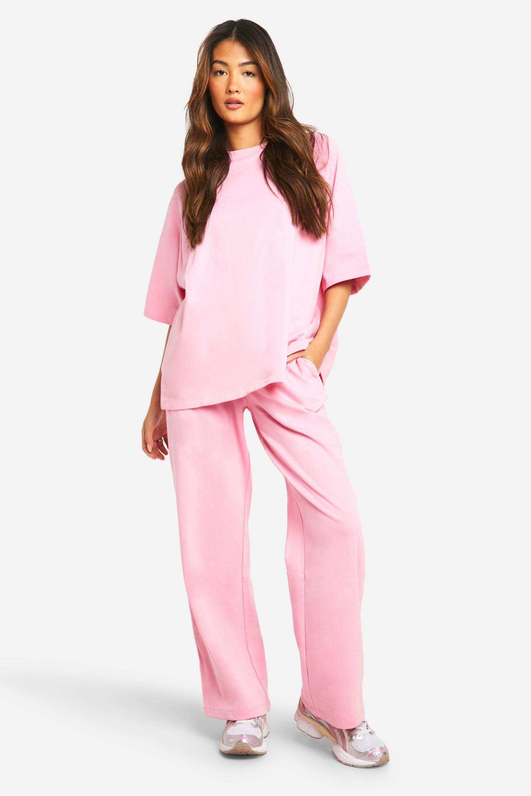 Boohoo Womens Loopback Short Sleeve Sweatshirt And Straight Leg Jogger Set