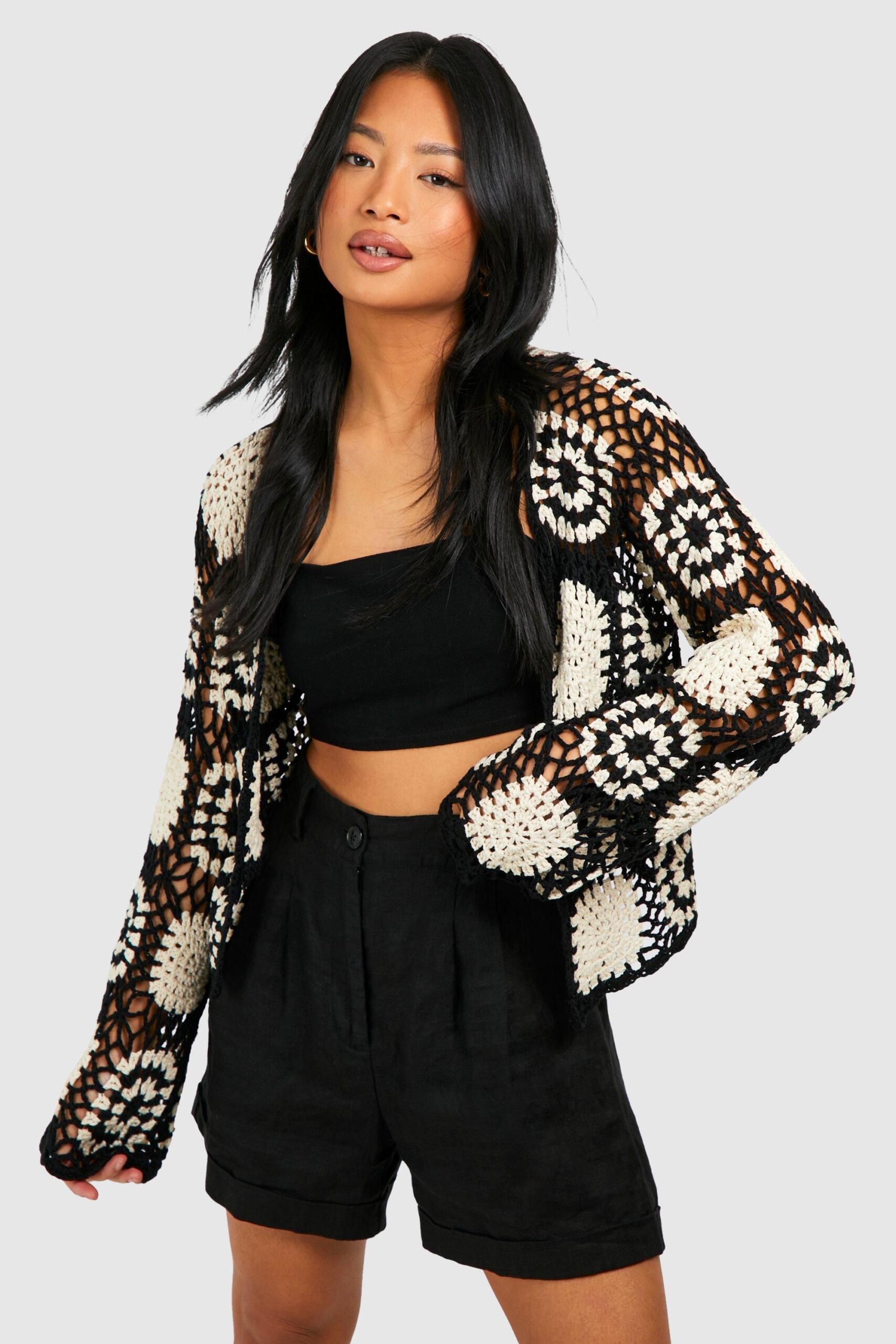 Boohoo Womens Petite Patchwork Crochet Cardigan