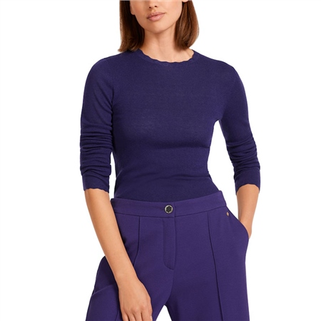 The round neck design adds a touch of sophistication, while the pretty scalloped edge detailing adds a feminine and stylish touch. The long sleeves are created with a lightweight knit, making it perfect for layering or wearing on its own.