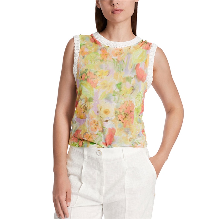 Top with citrus print by Marc Cain This top with citrus print by Marc Cain is a versatile and feminine vest style top. It has a round neckline, sleeveless design in a lovely cotton fabric. It features a beautiful blurred floral print with co ….