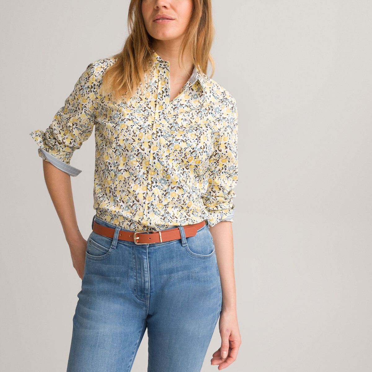 Anne Weyburn Floral Cotton Mix Shirt with Long Sleeves