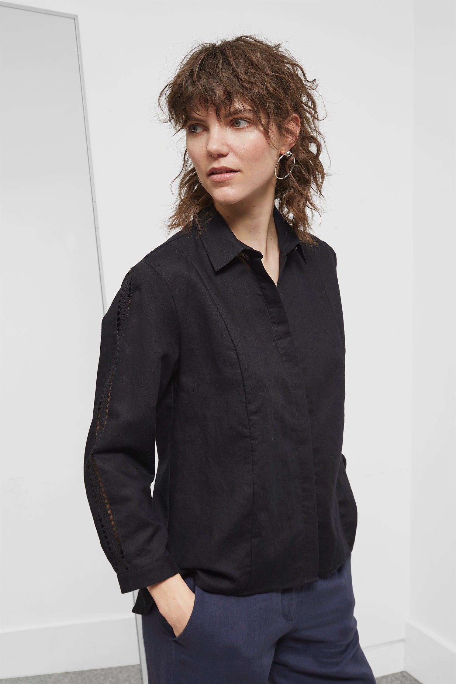 Featuring a point collar and a dipped hem, this linen shirt adds an extra touch of elegance to any outfit. Its versatility shines through as it can be easily paired with wide-leg culottes for a chic and trendy look. With a UK small length of 71cm, this shirt is designed to flatter all body types.