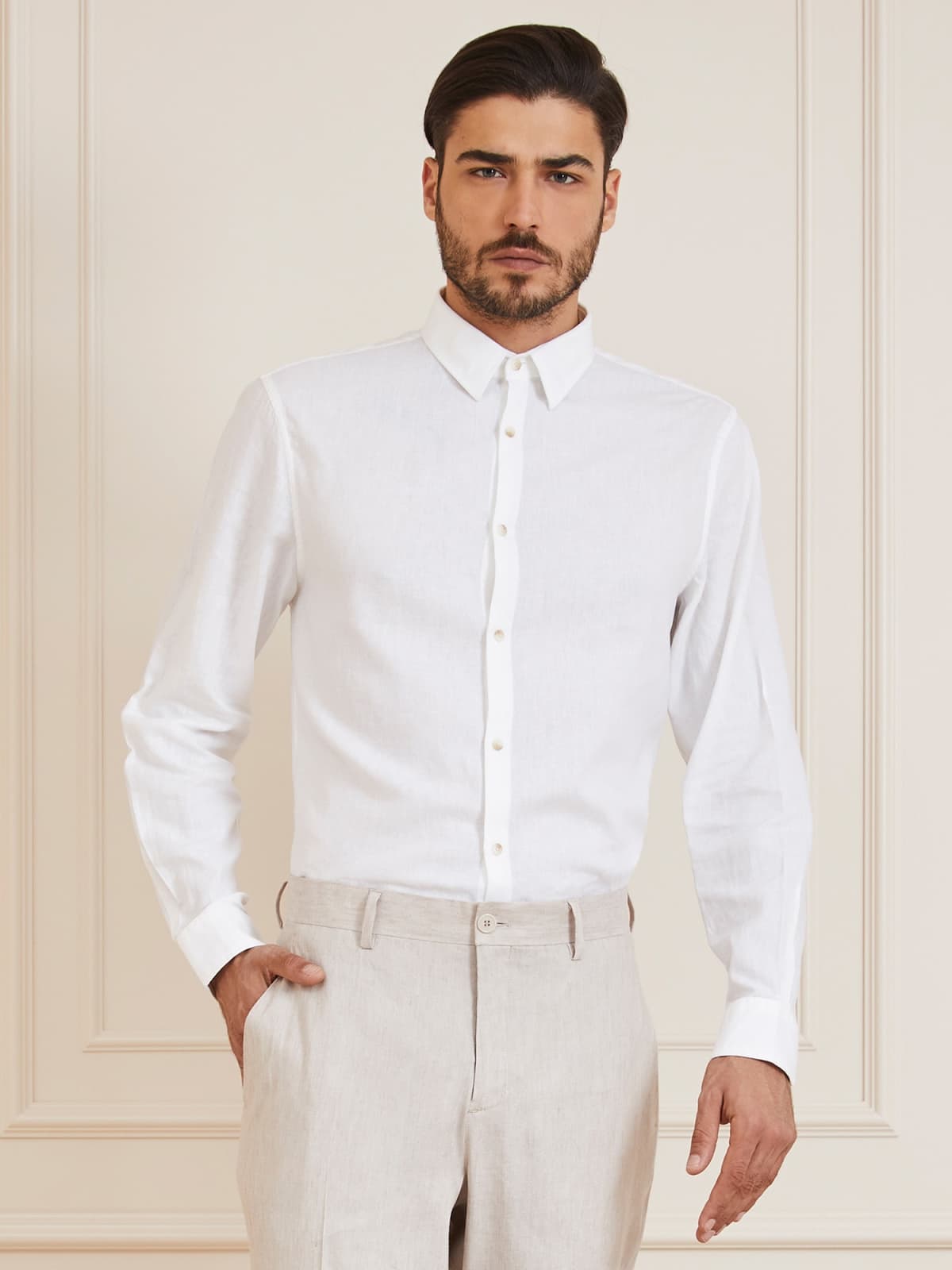 Linen blend shirt.Italian collar.Long sleeves.Regular fit.Buttons fastening. Picture shows size 42.Total length: 81 cm / 31.89 inch.Sleeve length: 67 cm / 26.38 inch.