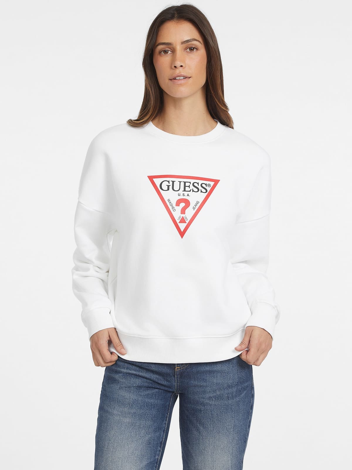 Oversized crewneck pullover featuring our iconic red triangle logo across the chest.Knit fleece pullover sweatshirt.Crew neck.Long sleeves.Oversized fit.Slips on.Signature logo graphic.Ribbed trim.Picture shows size S.Total length: 63,5 cm / 25 inch.True to size.
