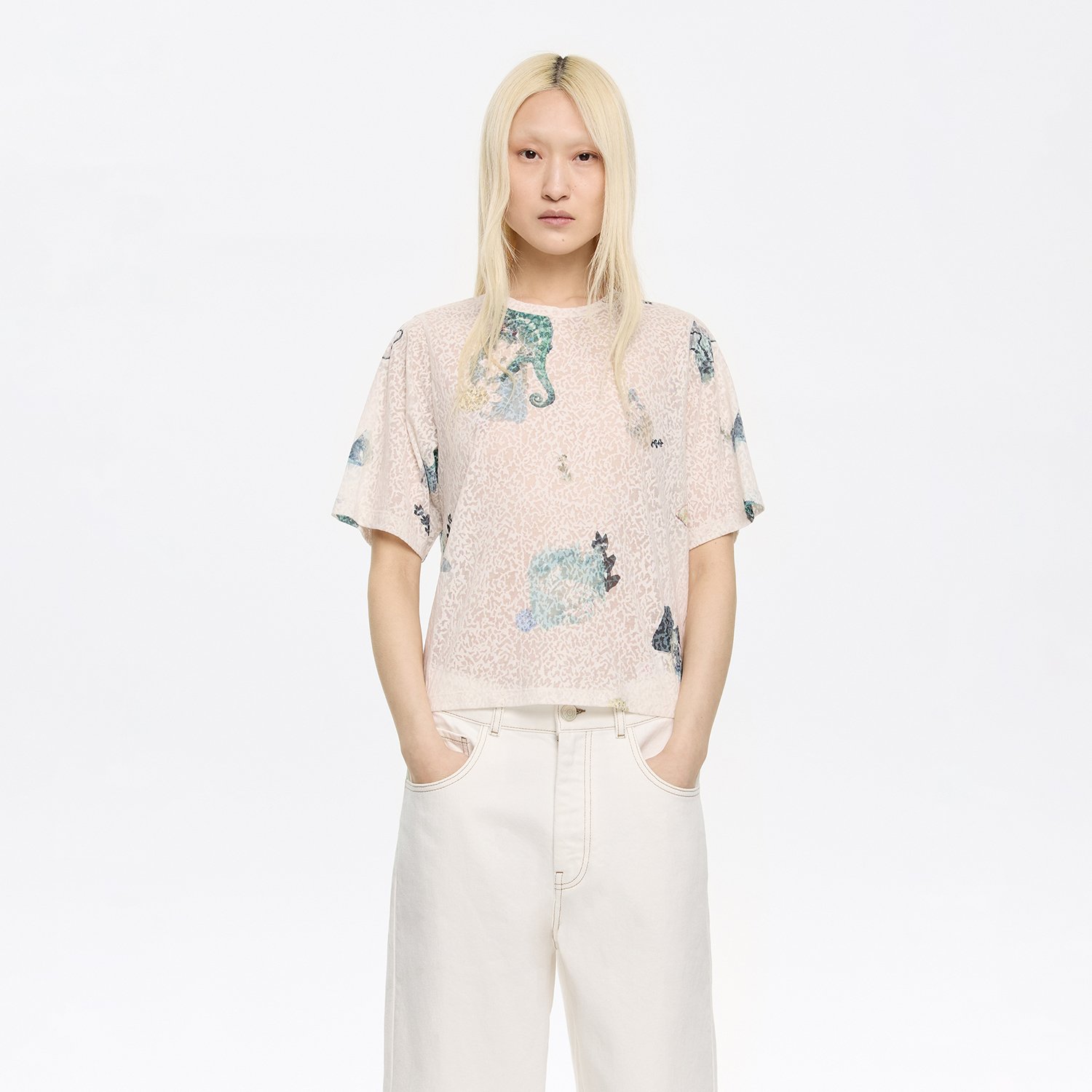 BIMBA Y LOLA Ivory Chameleon devoré boxy T-shirt