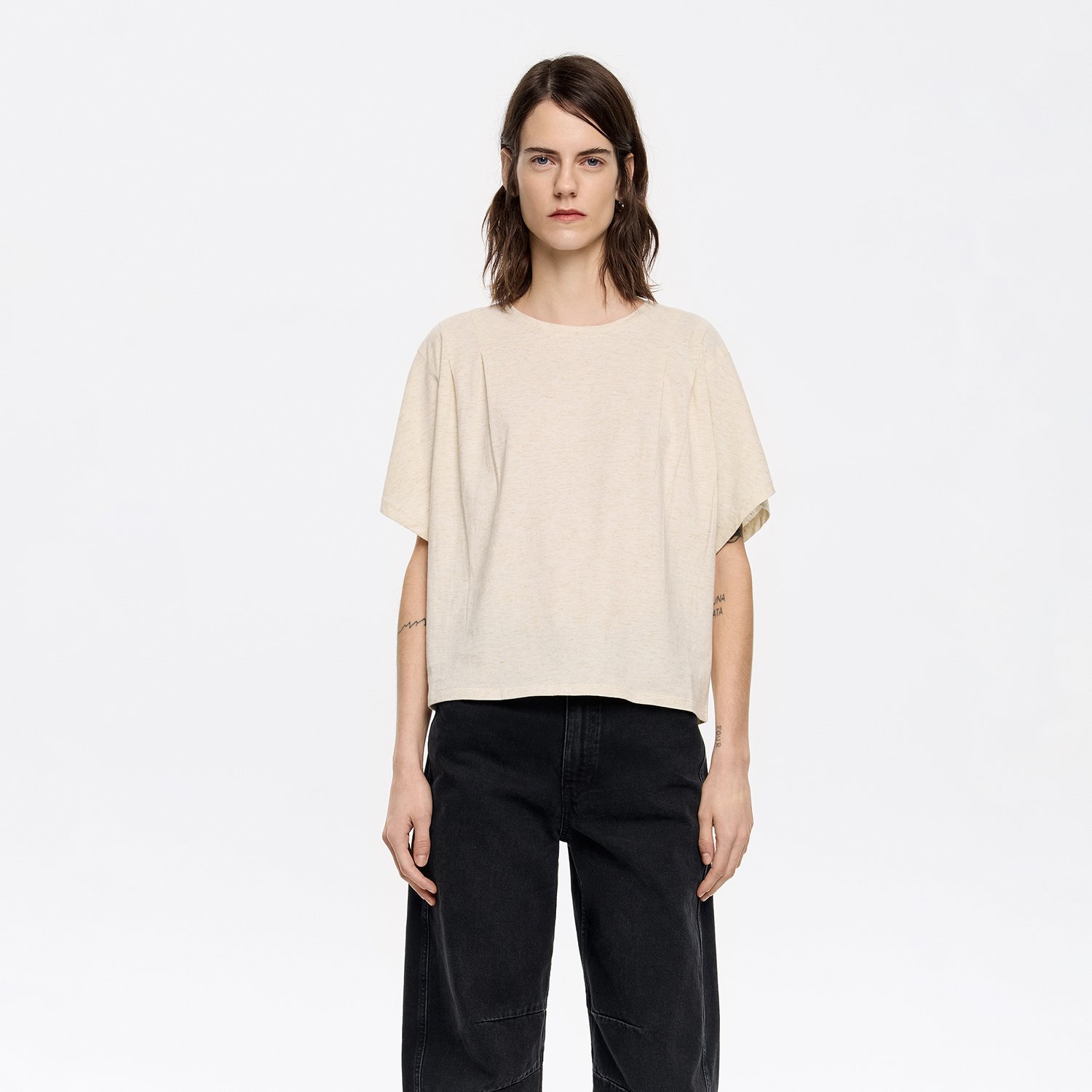 Fluid T-shirt 100% cotton Boxy cut Crew neck Short sleeve Shoulder pleats