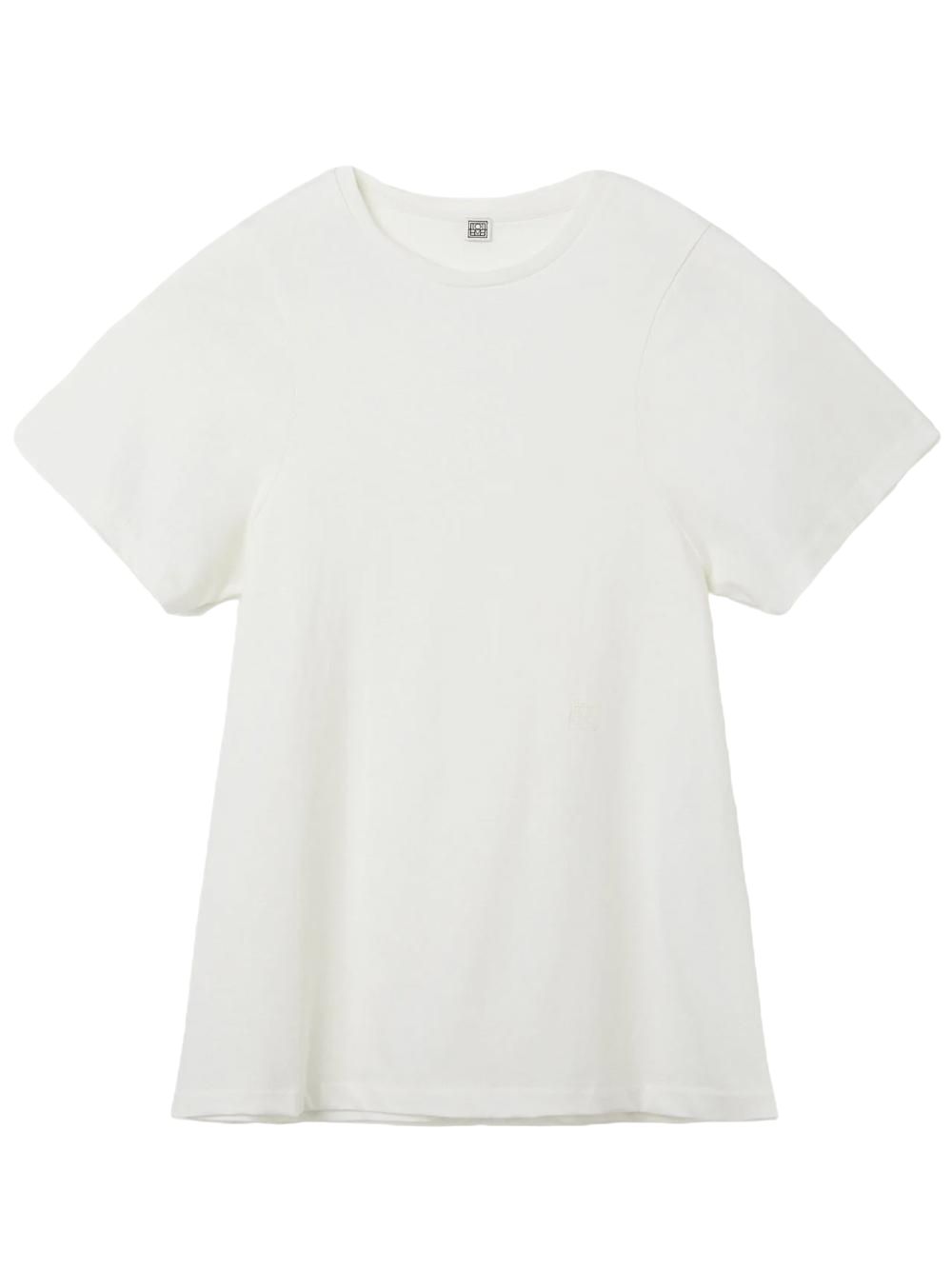TOTEME Curved Seam T-SHIRT OFF-WHITE Signature TOTEME T-shirt made in Portugal from soft, light and fresh organic-cotton jersey. HIGHLIGHT Embroidered monogram Relaxed slim fit Round neck Curved armhole seams Composition Organic Cotton 100% Product ID: 211439770-110 Season: PS25 Collection