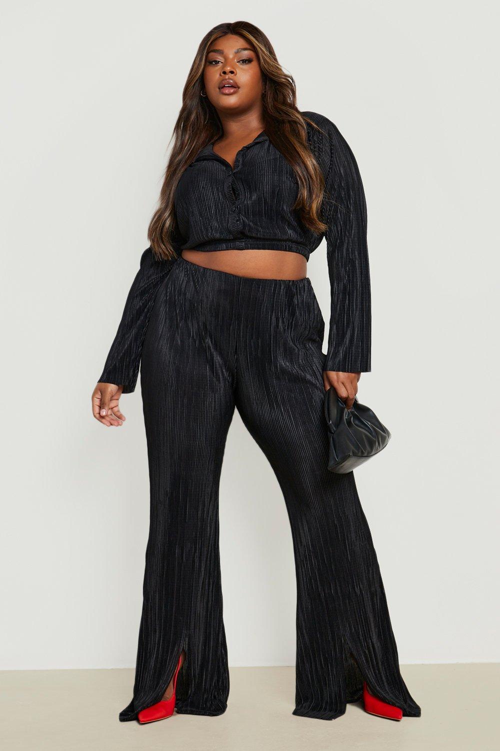 Boohoo Womens Plus Plisse Split Leg Trousers Co-Ord