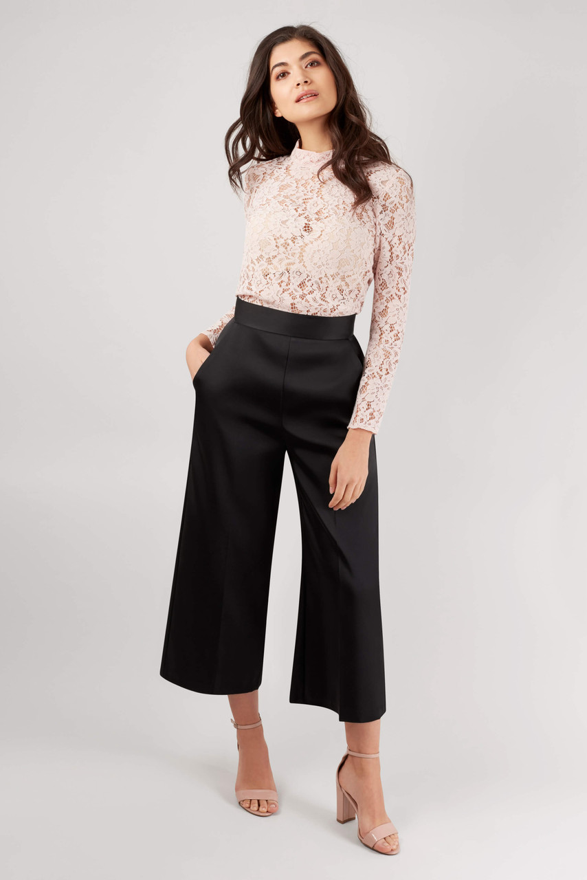 Closet London Black Satin Crop Leg High-Waist Trousers