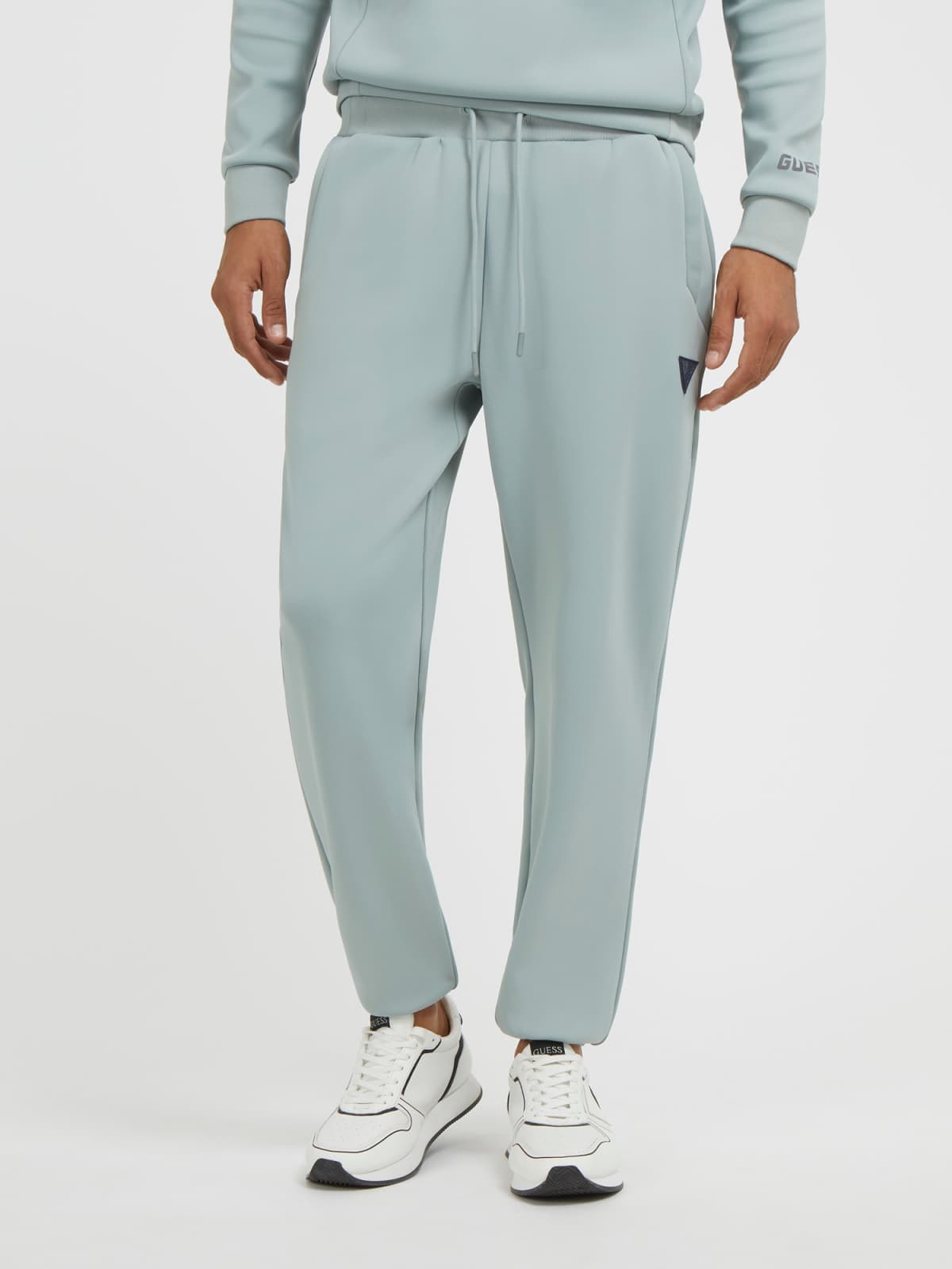 Syntethic fabric pants.Jogger style.Mid rise, cuffed leg.Relaxed fit.Drawstring fastening.FABRIC TYPE: scuba.EMBELLISHMENTS: Small side triangle logo patch. MEASUREMENTS: Picture show size M.Inseam length: 104cm/ 40,94 inch.True to size.