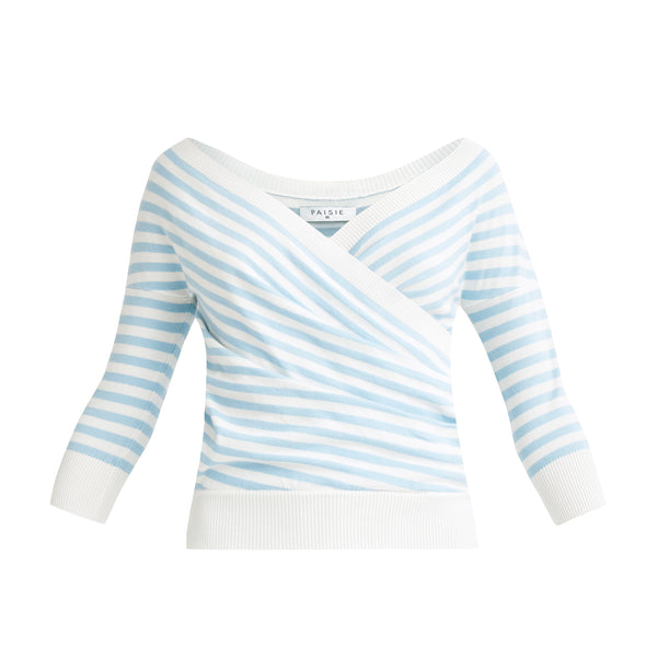 soft and comfortable fabric, perfect for all-day wear. The Paisie Knitted Wrap Top with 3/4 sleeves is designed to flatter your figure with its elegant wrap silhouette. It features a V-neckline that adds a feminine touch and enhances your décolletage.