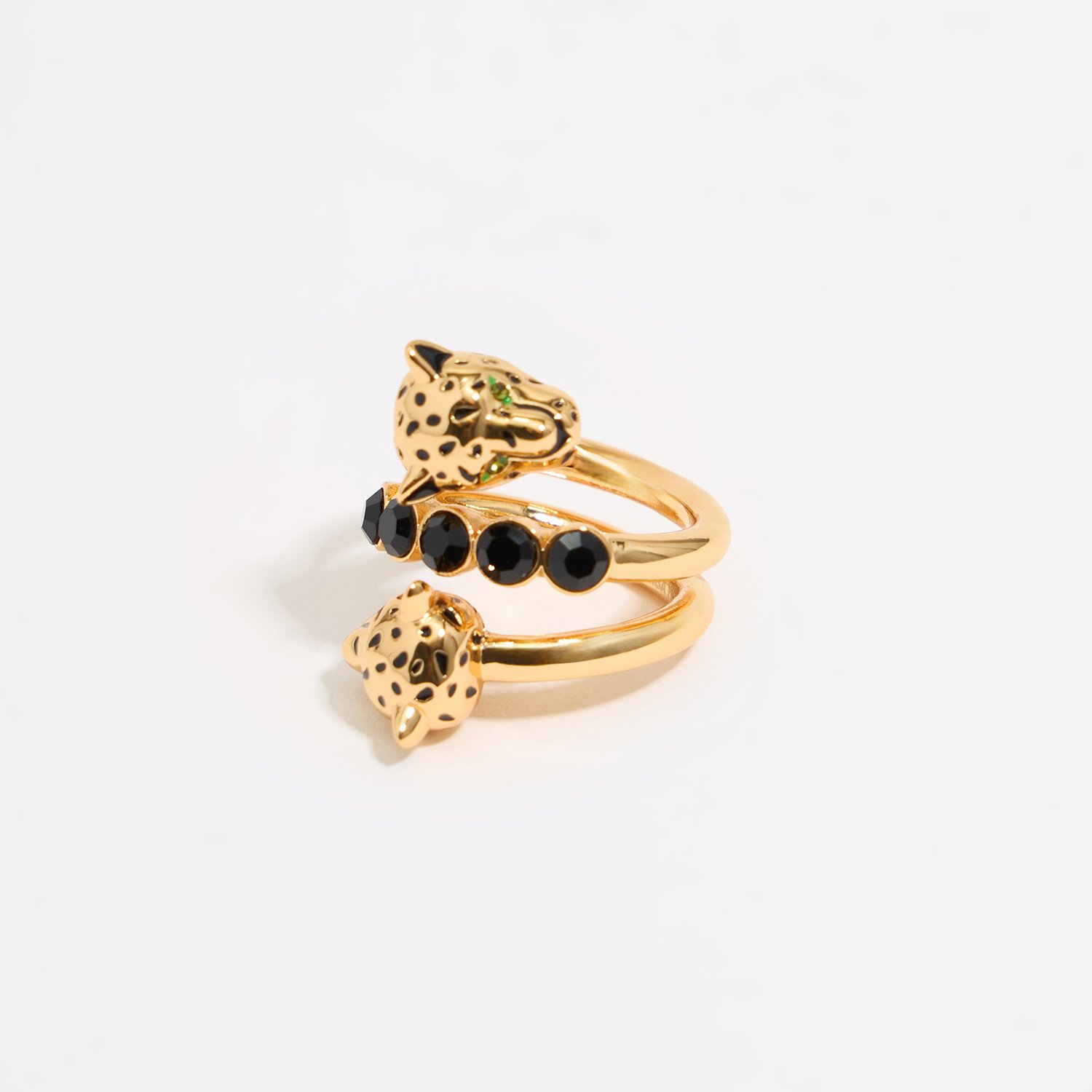 Gold metal spiral ring with panther. Model customized with engraved logo.