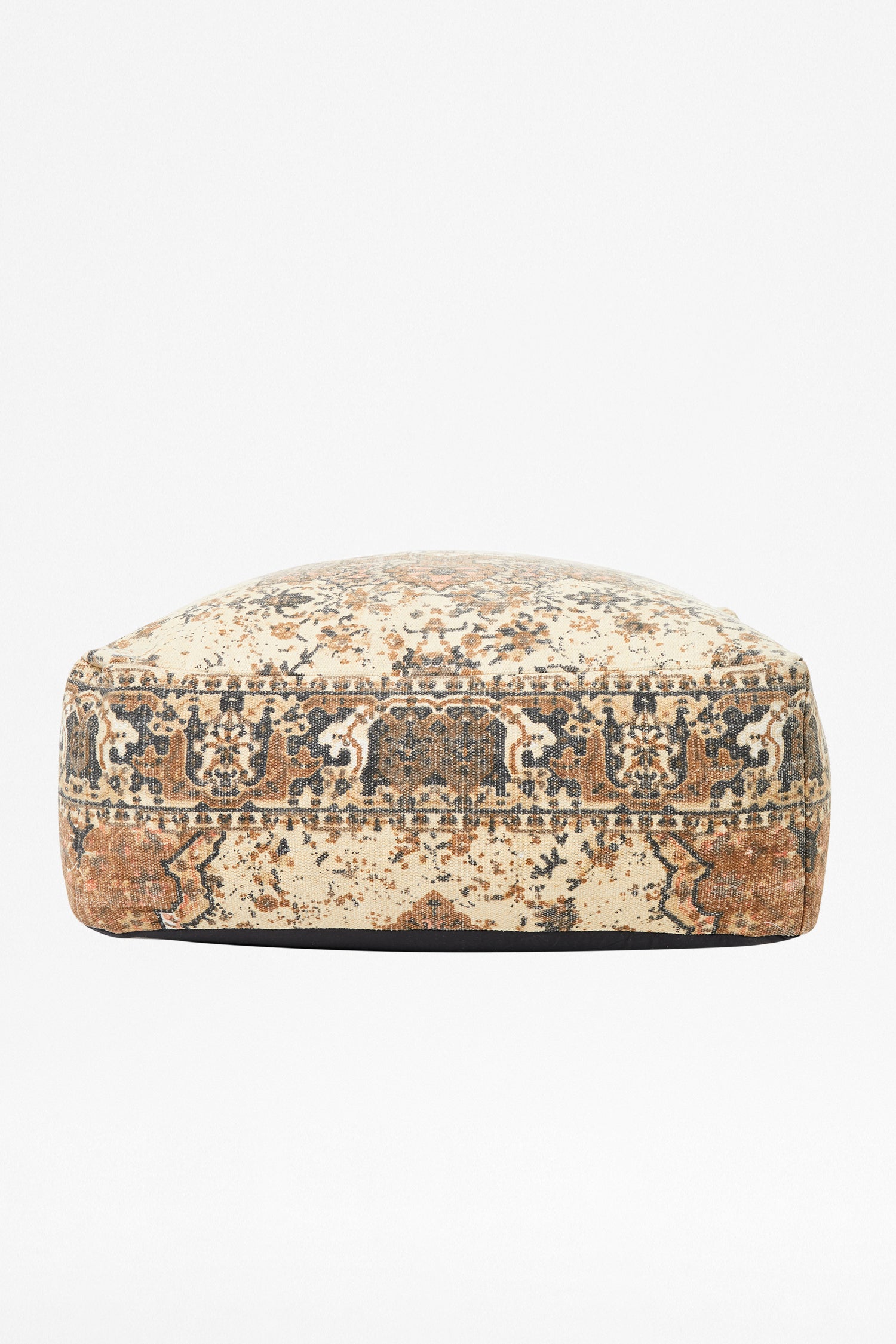 Dress cosy corners with sumptuous textiles like the Pandora Pouffe. The large pouffe features an intricate printed pattern inspired by traditional Moroccan designs. In a soft natural palette, the cushion has a versatile finish. Stack alongside similar toned cushions for an artfully arranged seating area. Patterned pouffe Fabric: textured, thick cotton Hand-woven Printed Length: 80cm Width: 80cm Depth: 30cm Style code – 8BAO2