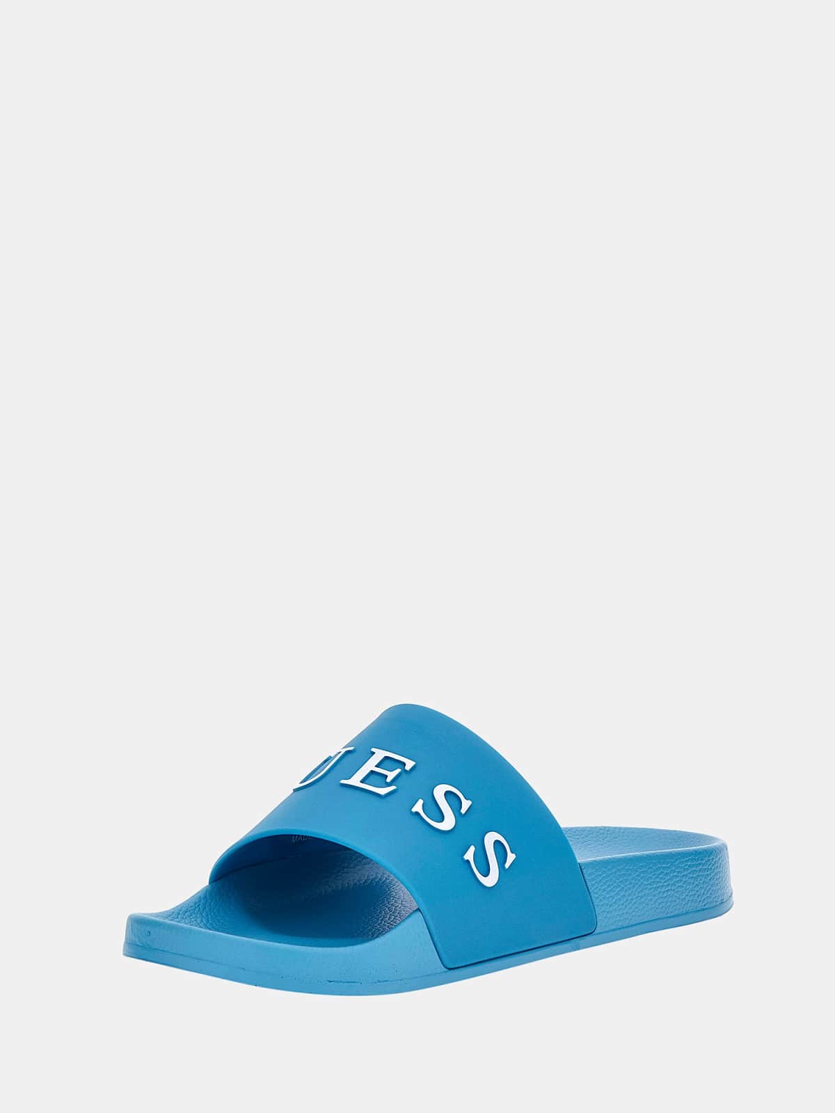 Introducing the Guess Logo Slides, perfect for your summer adventures! These synthetic fabric slides are ultra-comfortable with their single band design and easy slip-on style. The contrasting Guess logo on the band adds a touch of luxury and sophistication to your casual look.