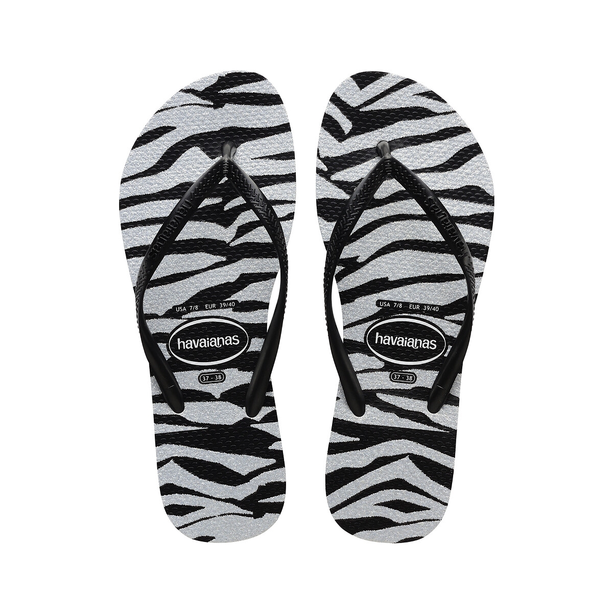 Step out in style with the Havaianas Slim Animals Glitter Flip Flops. These flip flops are perfect for those who love a bit of sparkle and animal print. The ultra-slim straps are adorned with glitter to add some glitz to your outfit, while the animal print on the footbed brings in a touch of the wild side.
