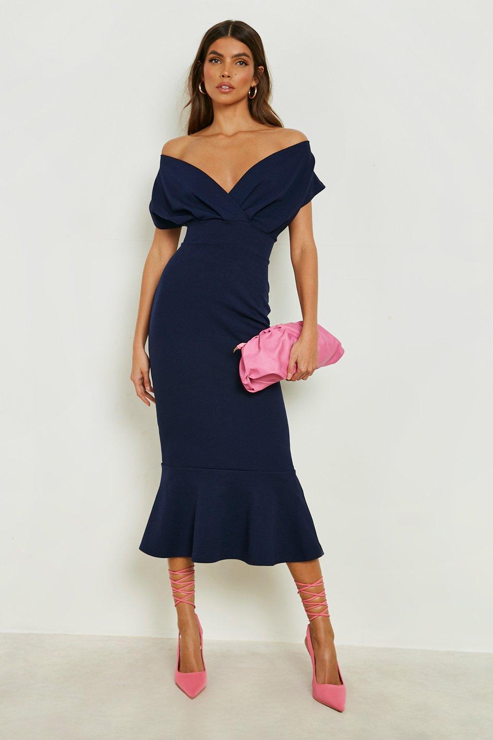 Womens Scuba Off Shoulder Peplum Midaxi Dress – Navy – 8 – This peplum dress is all you need for a soft, feminine vibe. A peplum hem dress never lets you down with its flattering flared waistline and standout silhouette. Showing off your hourglass figure and flattering your waistline, a black peplum dress will take you from office to after work drinks whilst something luxe and lacy is perfect for date night. We’ve got all the latest peplum dress looks in off-shoulder, wrap and structured styles.Style: Bodycon DressDesign: PlainFabric: Scuba CrepeLength: MaxiNeckline: SweetheartSleeve Length: Sleeveless